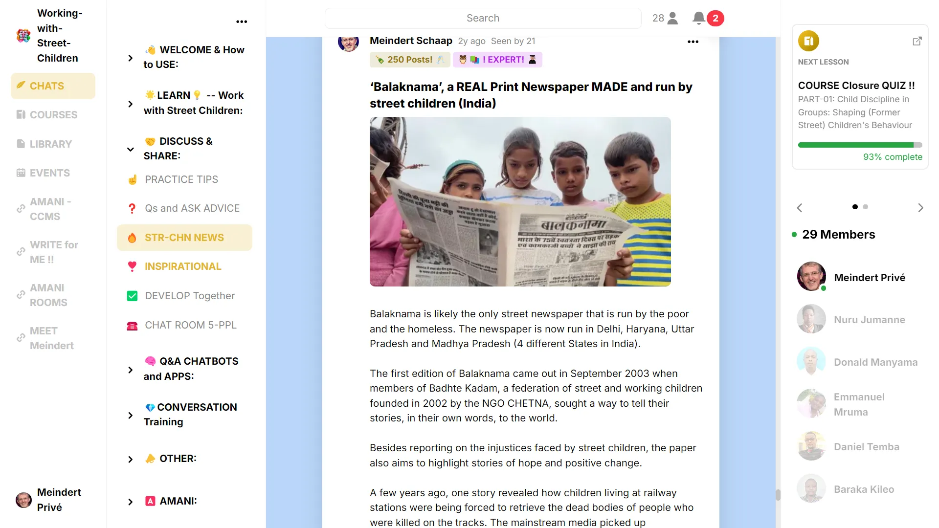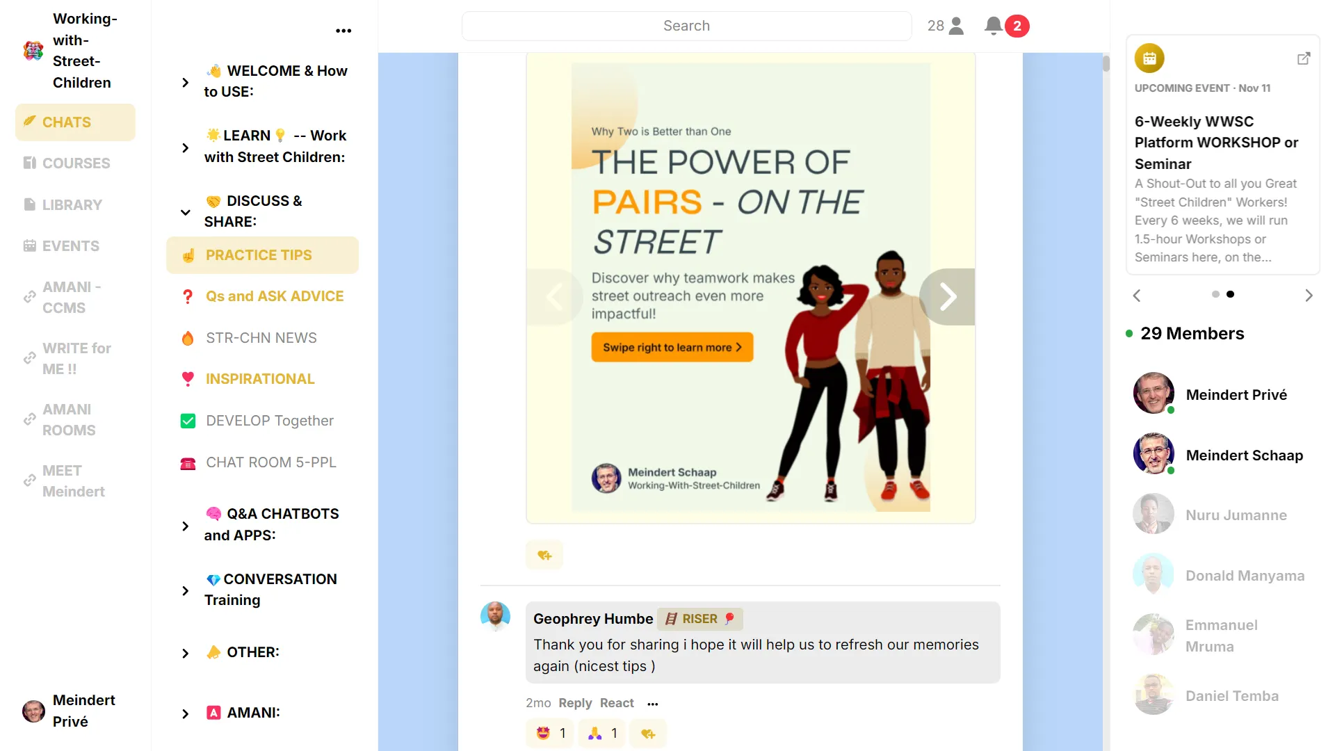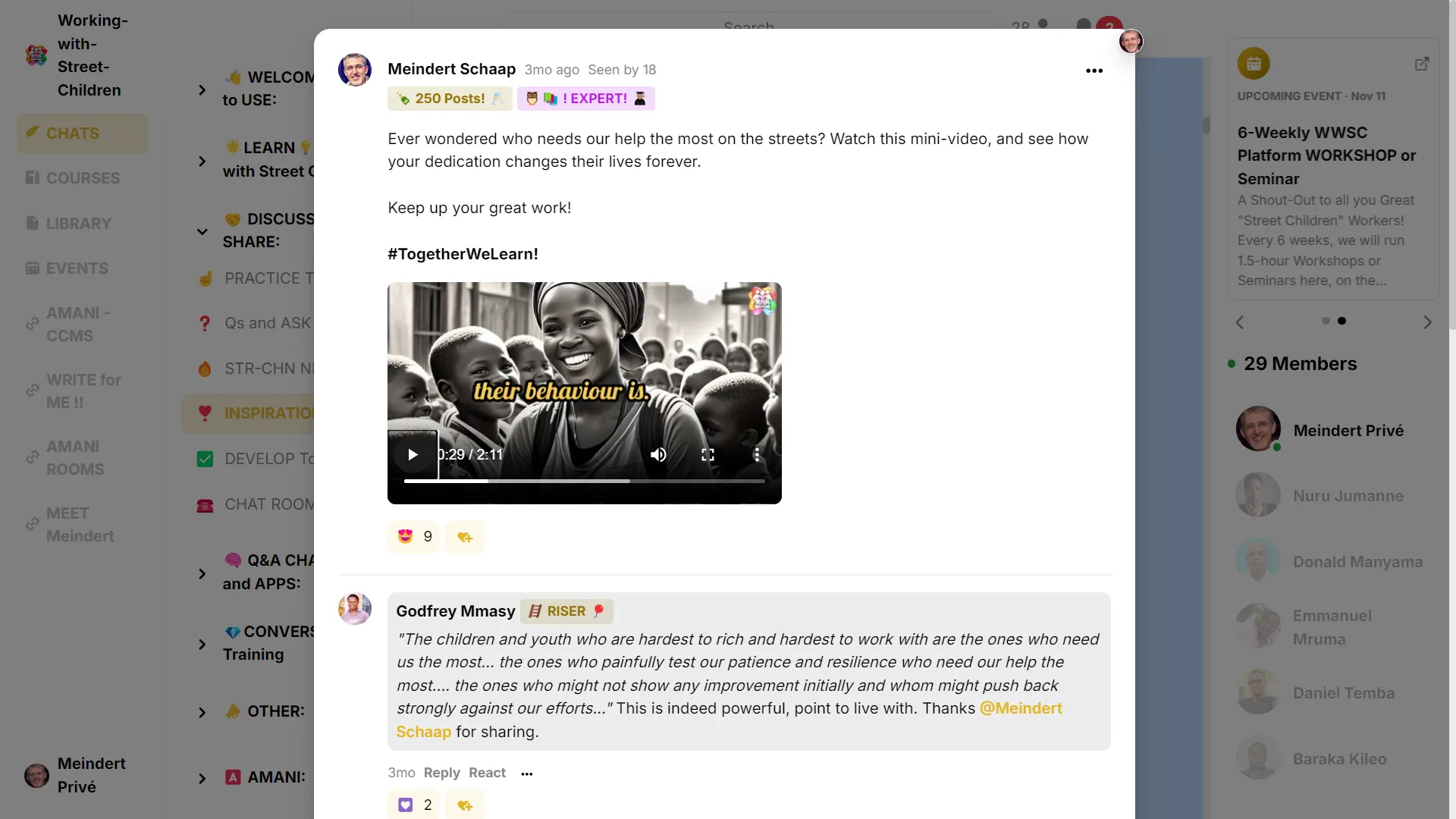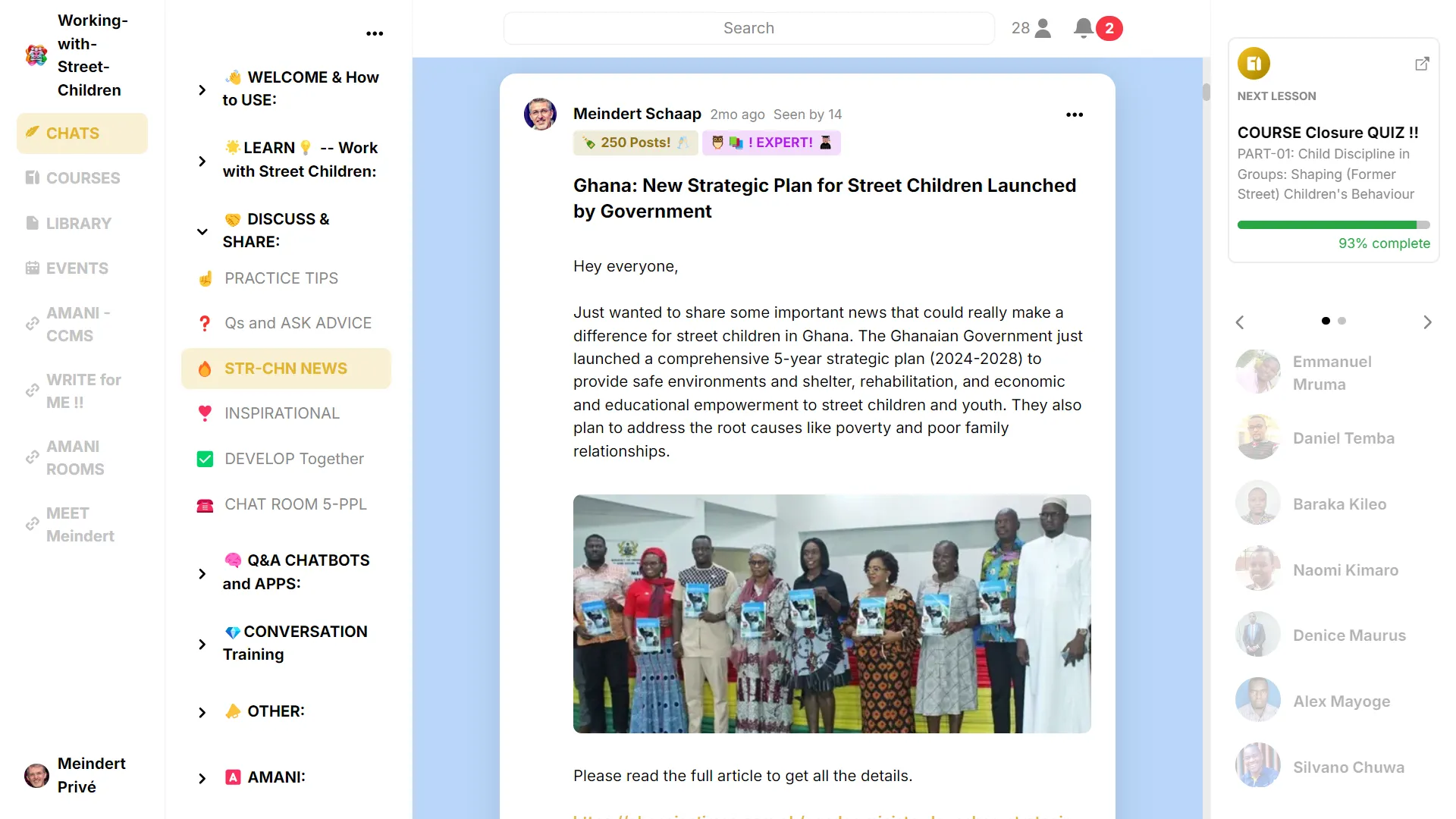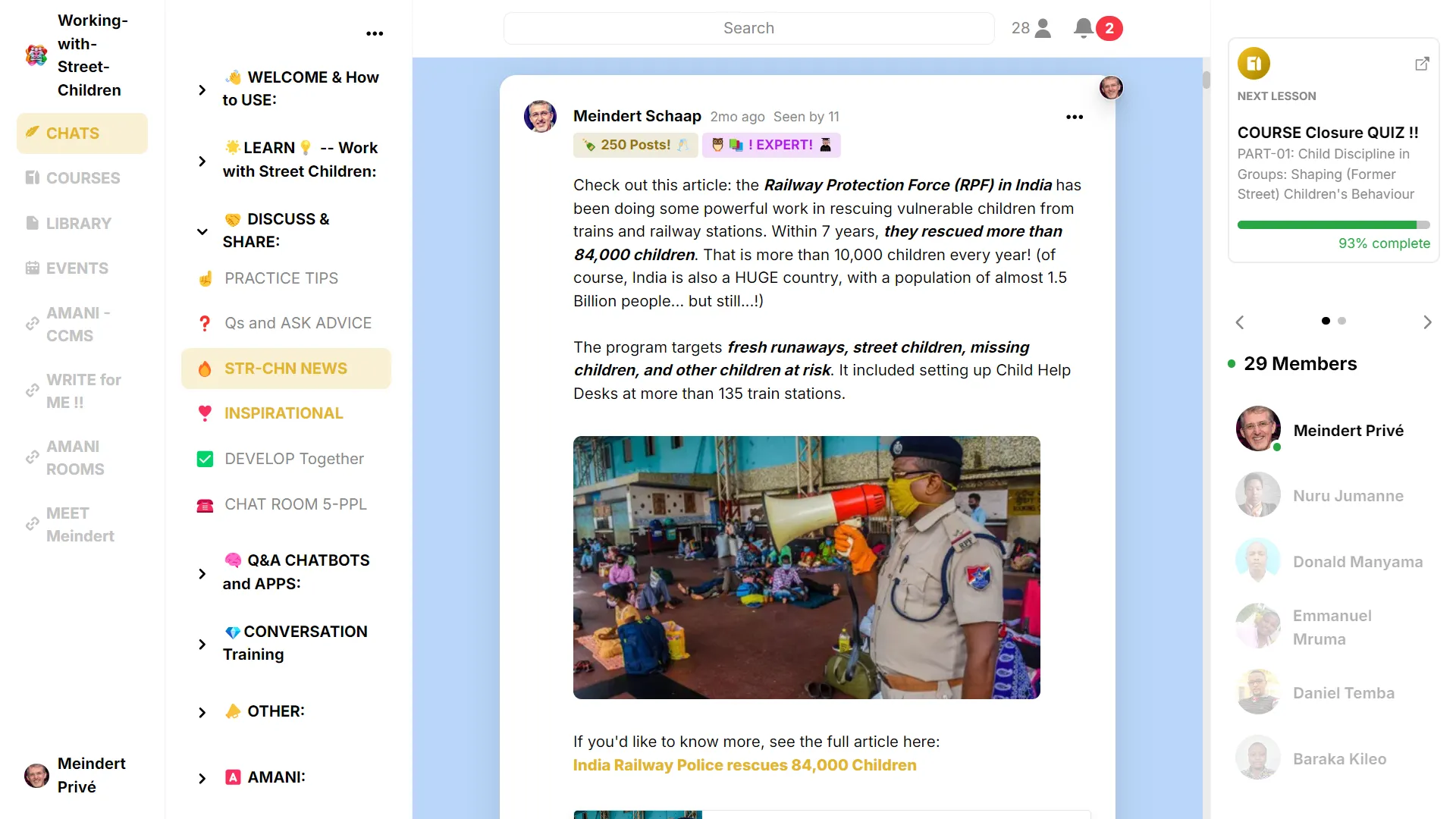 To give you a first idea of what the Community features look like in our Working-With-Street-Children platform, take a scroll through these:
