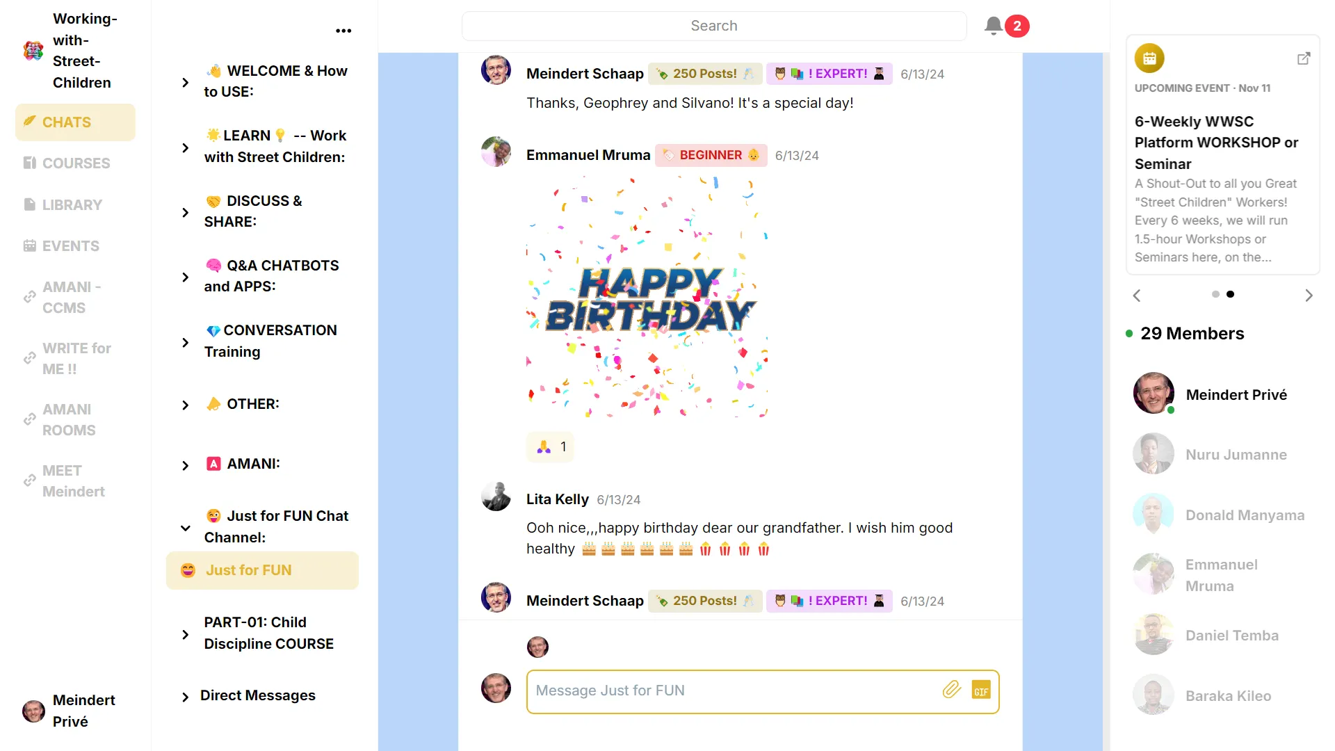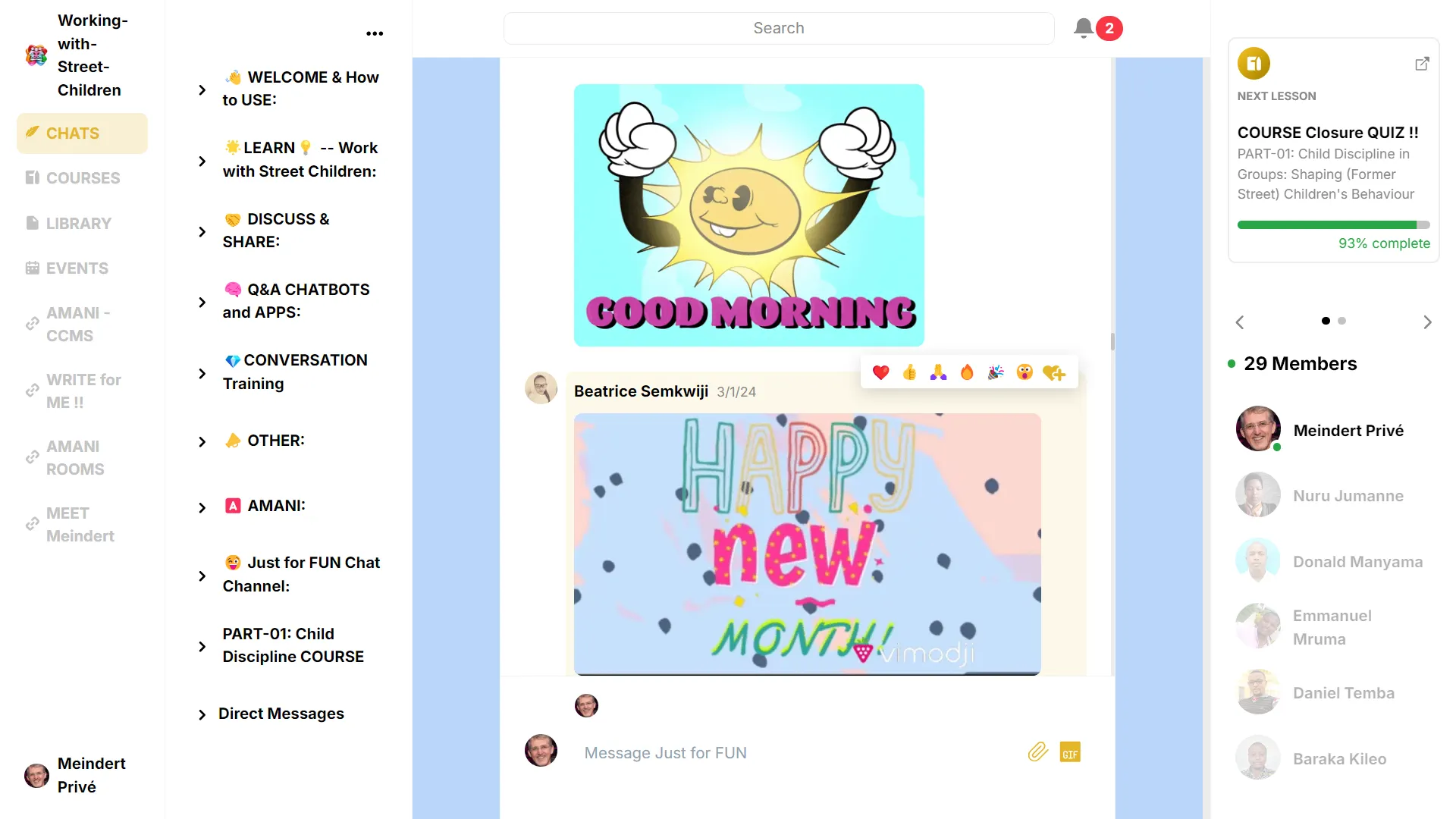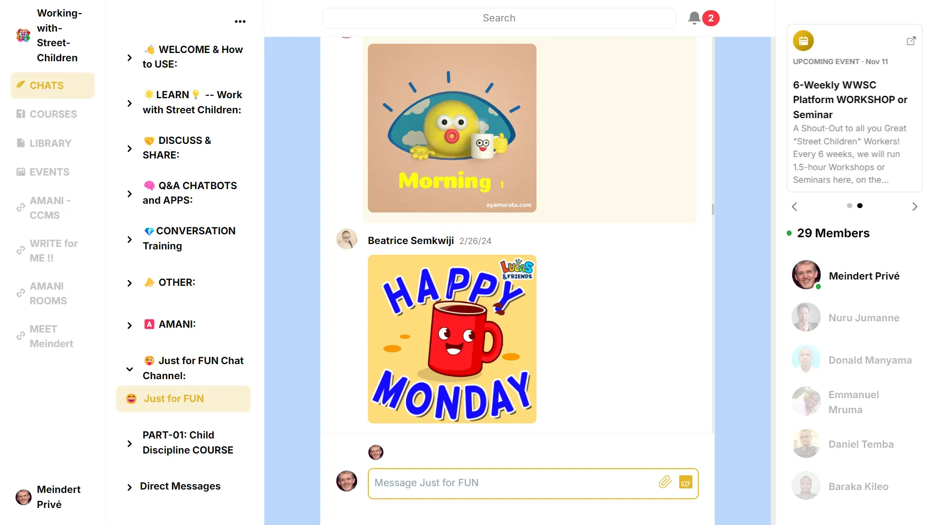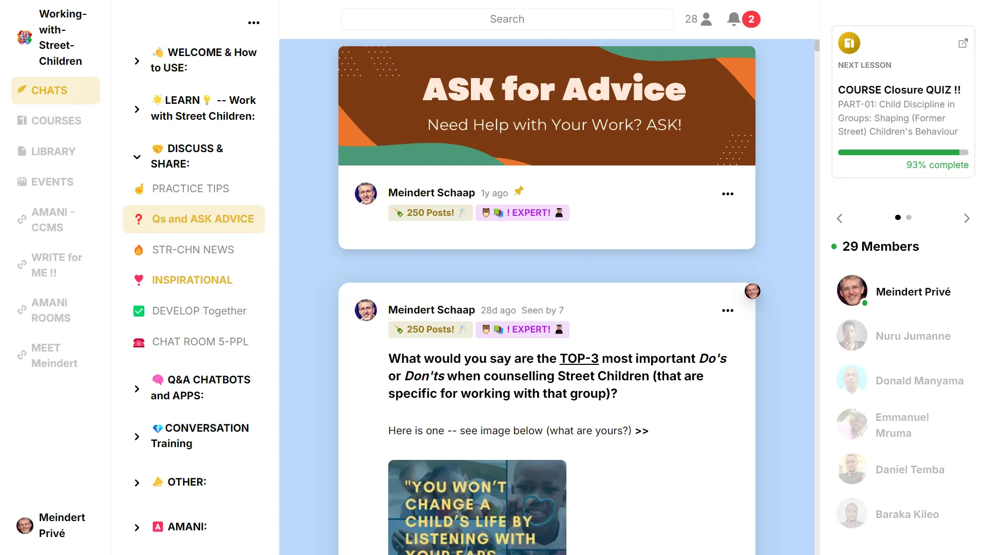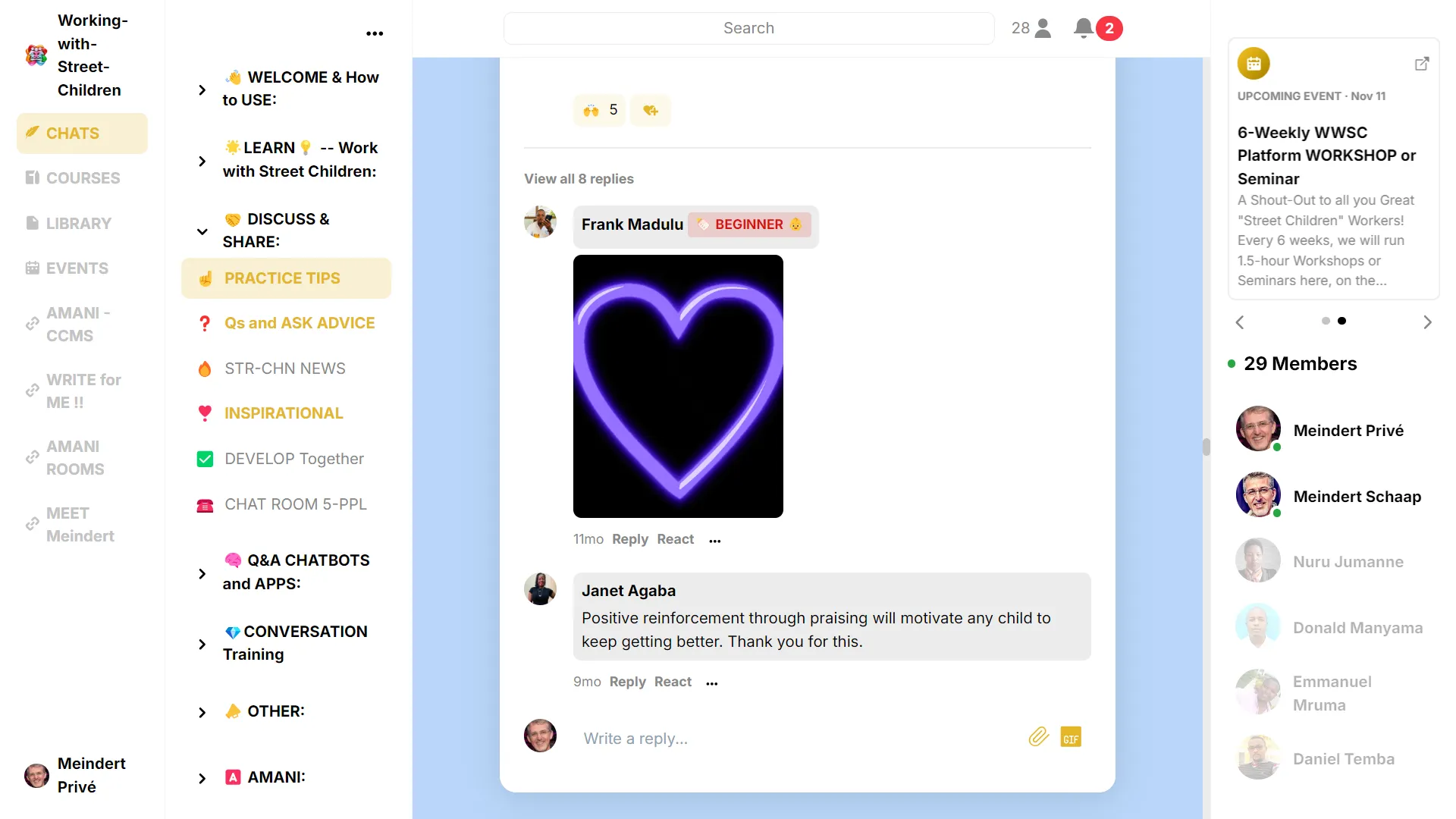 To give you a first idea of what the Community features look like in our Working-With-Street-Children platform, take a scroll through these: